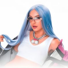 Голубые волосы развевает ветер.